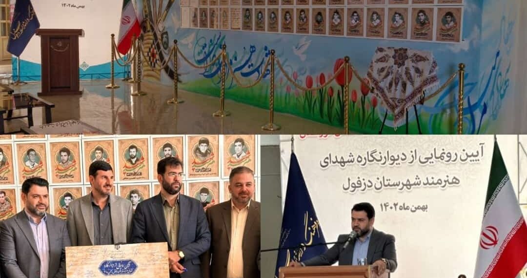 رونمایی از دیوار نگاره شهدای هنرمند شهرستان دزفول که در محل اداره فرهنگ و ارشاد اسلامی برگزار شد .